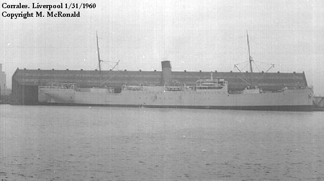 The Corrales was the last of a large group of sister ships built for Elders & Fyffes between 1920 and 1930.Ted Finch also included the following: