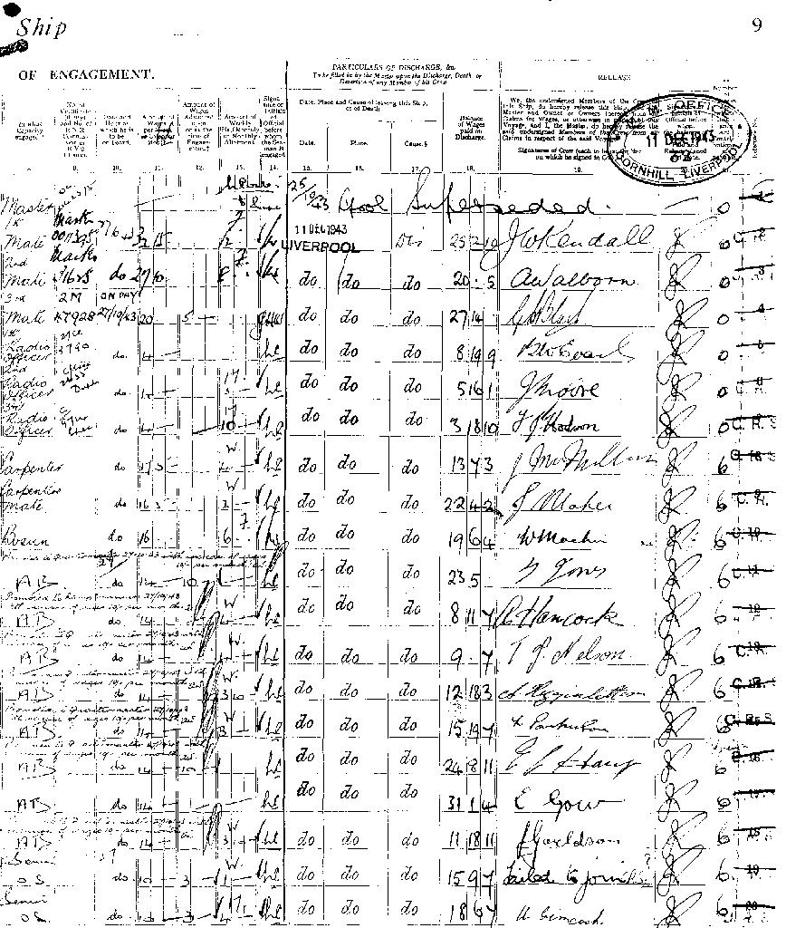From what I've been able to document thus far, she departed Liverpool on a Merchant vessel (part of a convoy) bound for Halifax somewhere around 30 Oct 1943. The only information I have on the ship is that the radioman on board ("the Chief Sparks") was named Jeffrey (Geoffrey?) Archer Black, nicknamed "Blackie". Hence, I am mailing to any person I can find in the UK named Jeffrey Black or Geoffrey Black.
